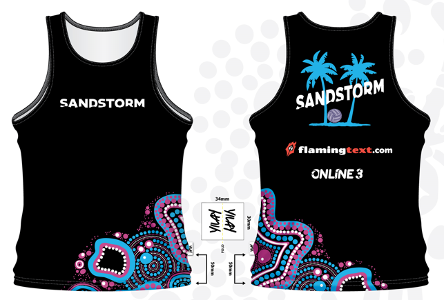 Sandstorm's "Limited Edition" 2024/2025 Signature Singlet. Proudly sponsored by Online3 and Flaming Text.
